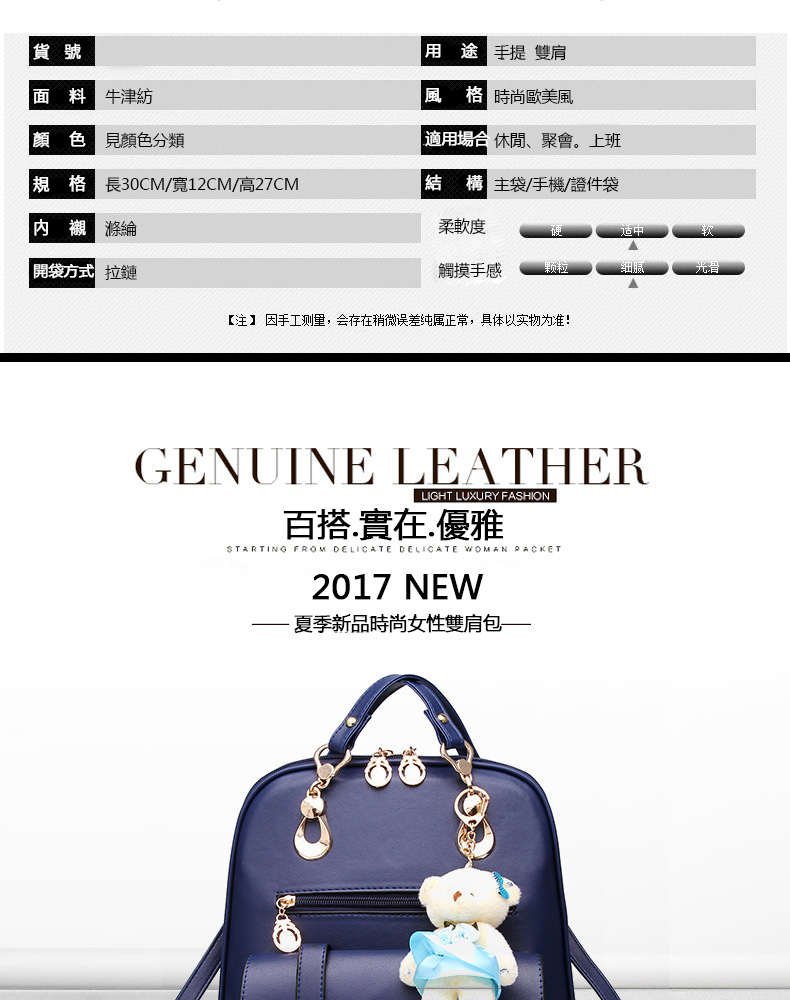 真皮雙肩女包 bag265