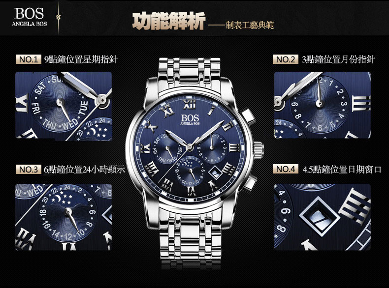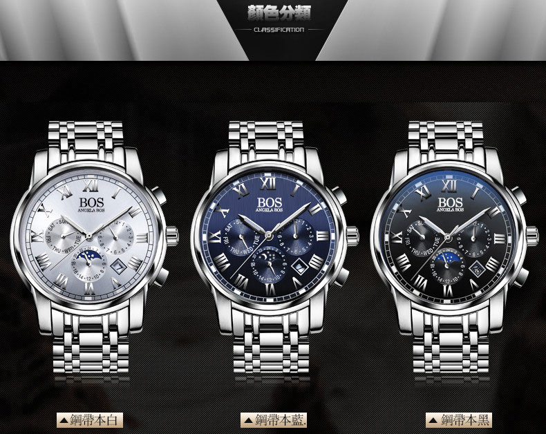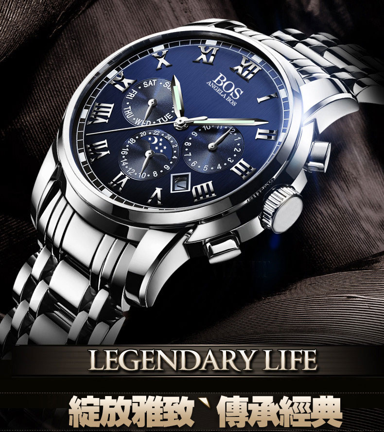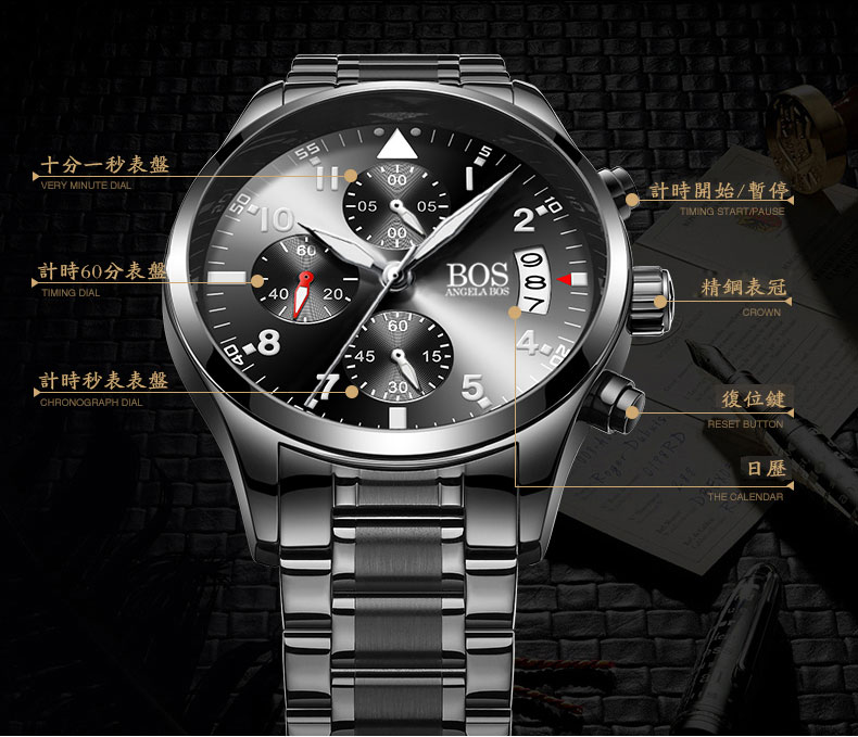三眼六針多功能防水精鋼錶Wat21