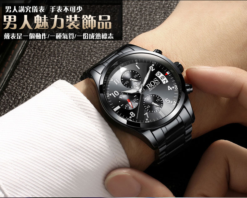 正品腕錶男士鋼帶石英手錶wat107