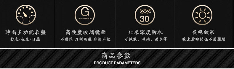 多功能男士腕錶陸針皮帶運動男錶wat110