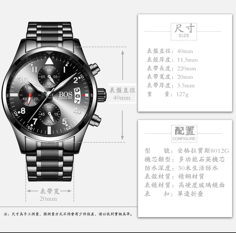 拜登男士手錶 防水時尚wat100