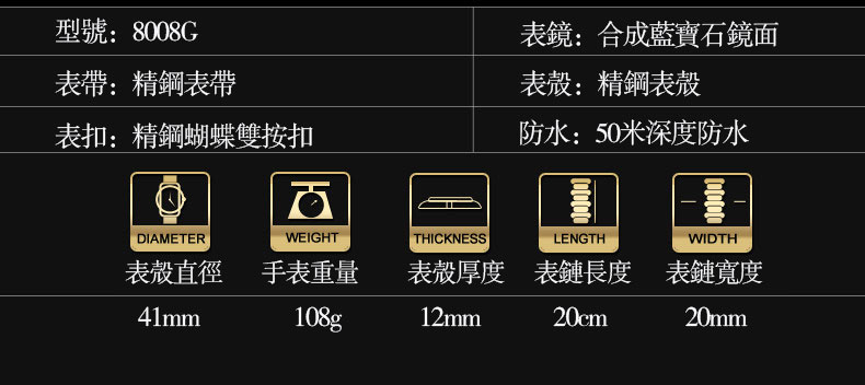 鋼帶防水運動石英男錶wat105