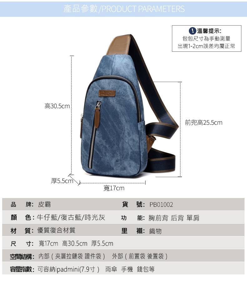 皮霸男士胸包Piba13