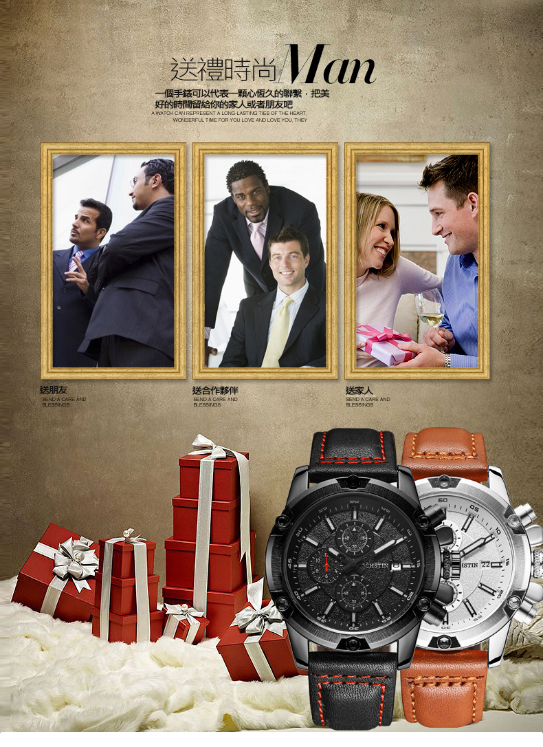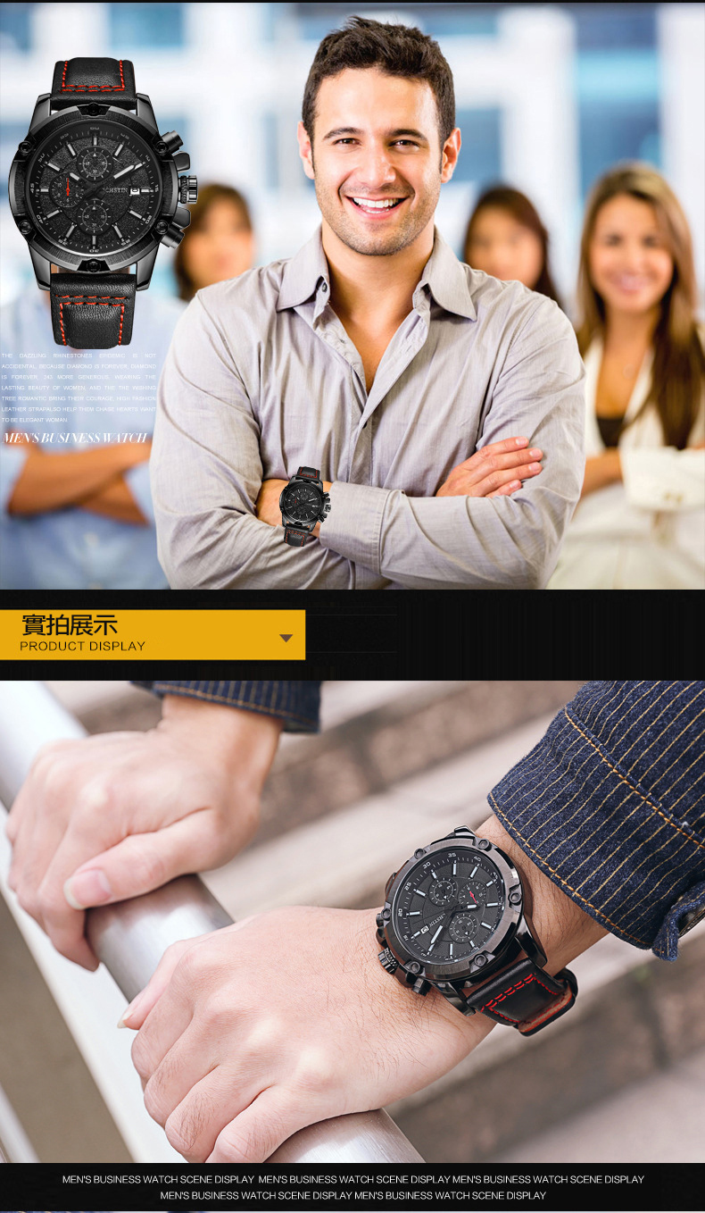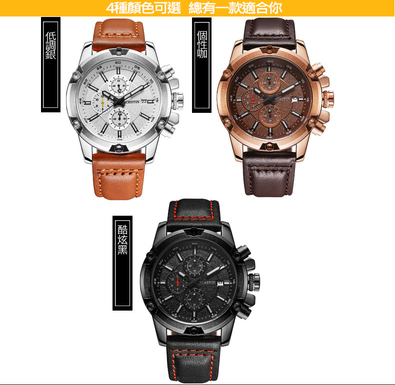 時尚多功能石英日曆男表wat113