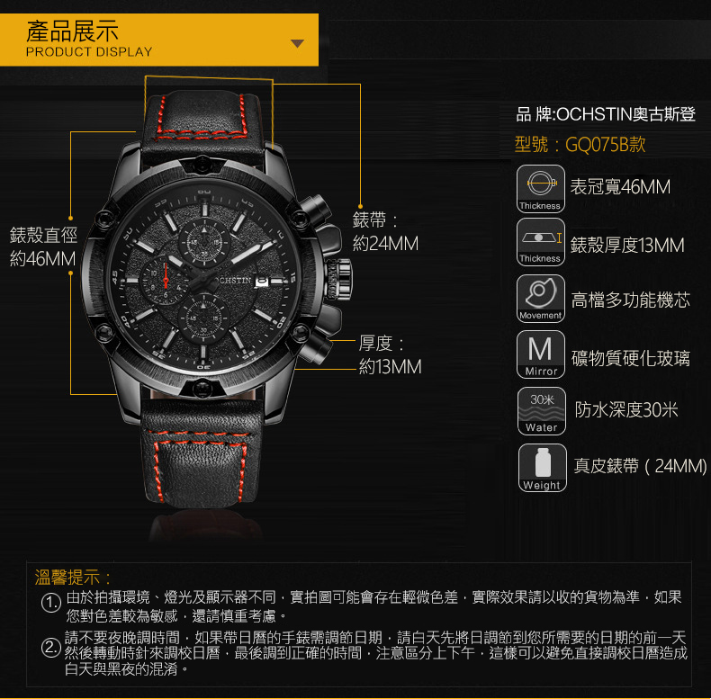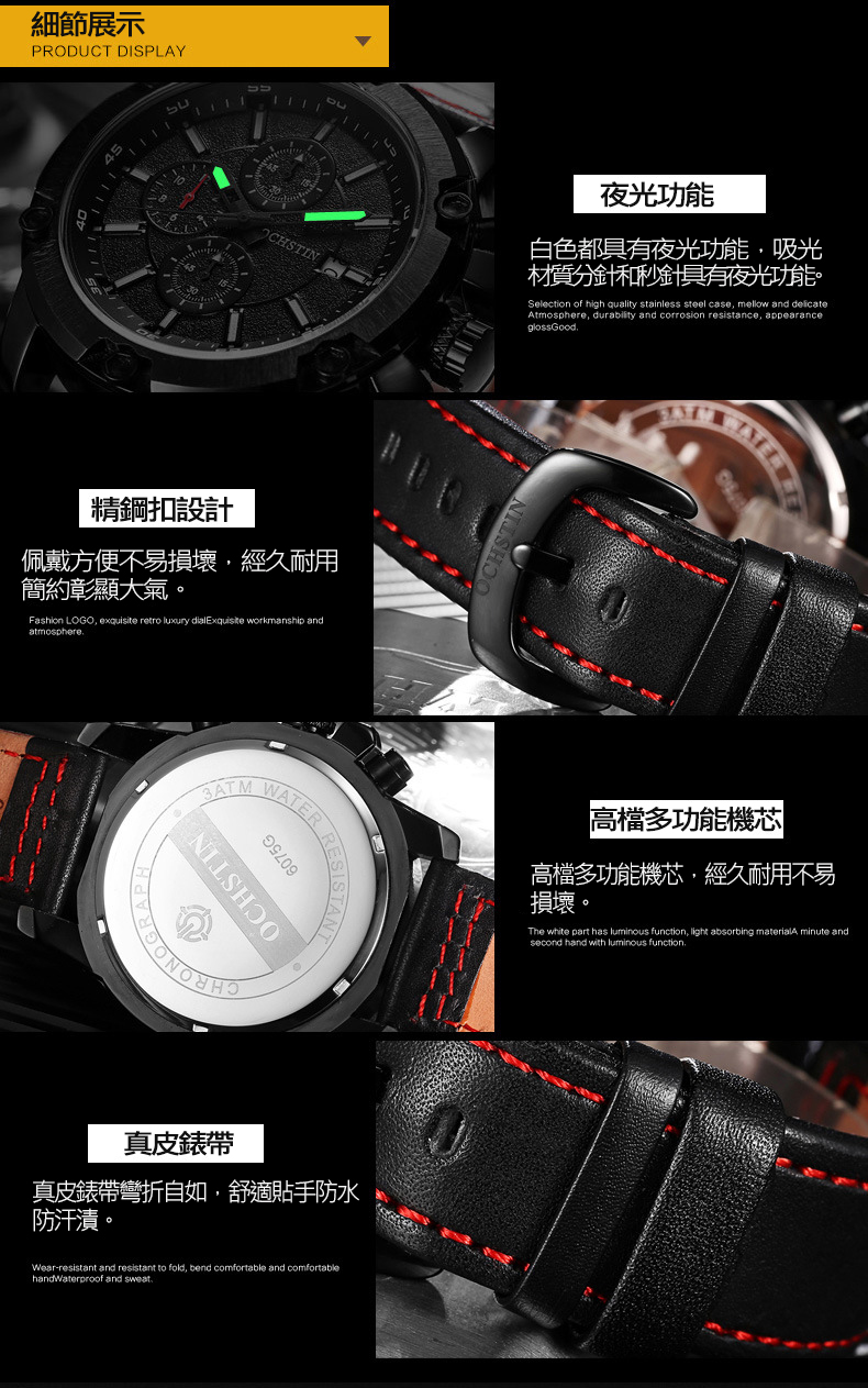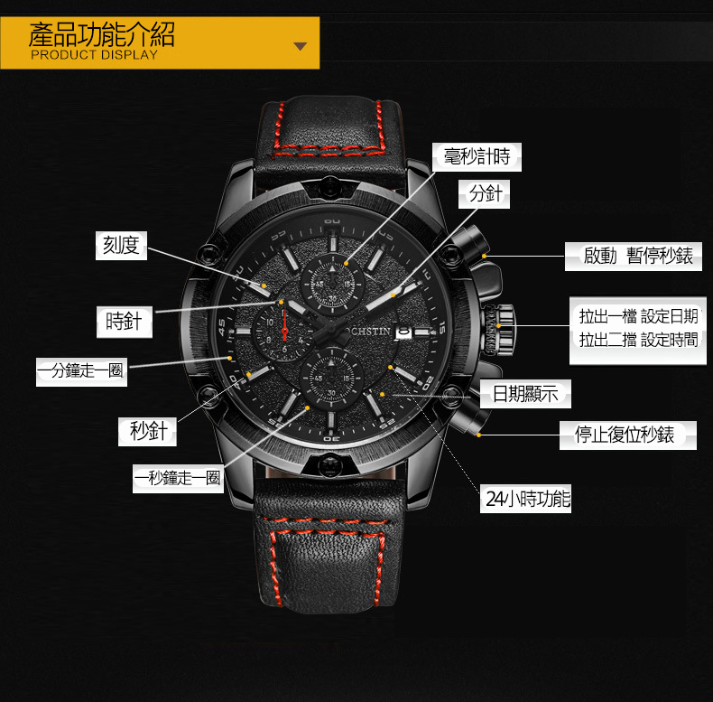 多功能男士腕錶陸針皮帶運動男錶wat110