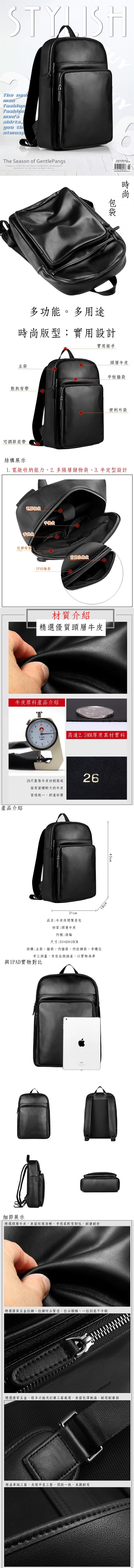 時尚皮質多功能大容量拉鏈真皮男士雙肩包 bag326