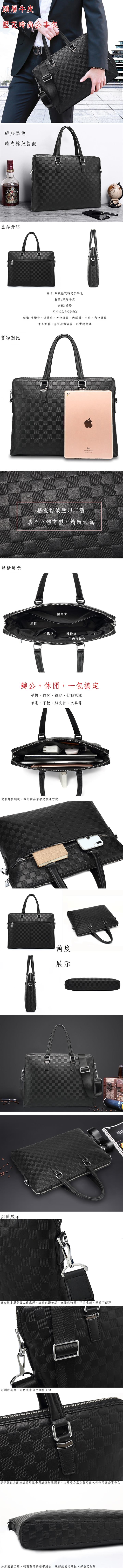 真皮頭層牛皮男士壓花格紋公事包 bag320