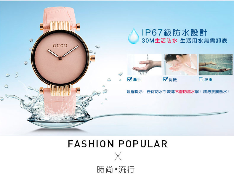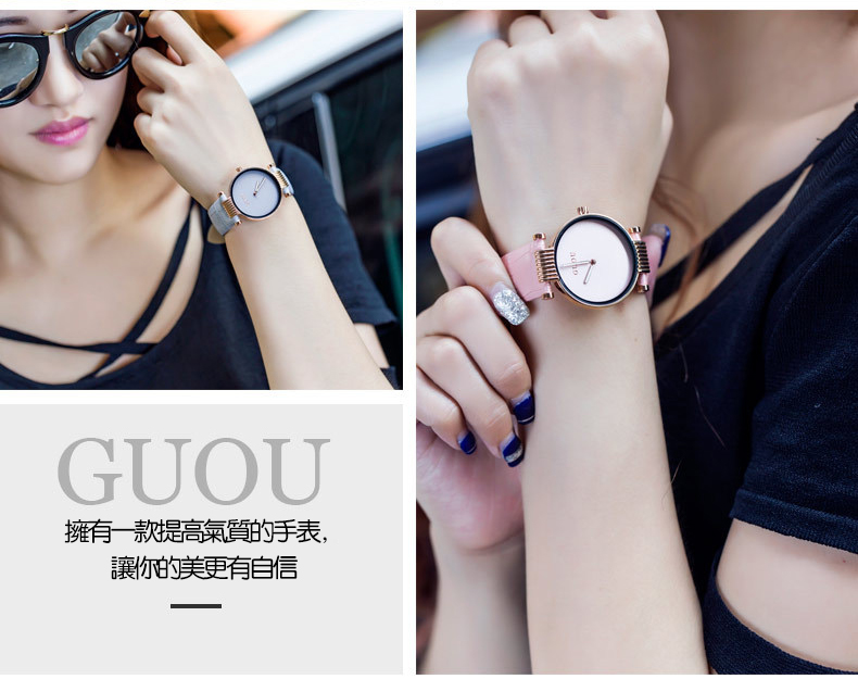 爆款 時來運轉 潮流個性 時尚 紫色皮錶帶 鑲鑽女士手錶Wat55