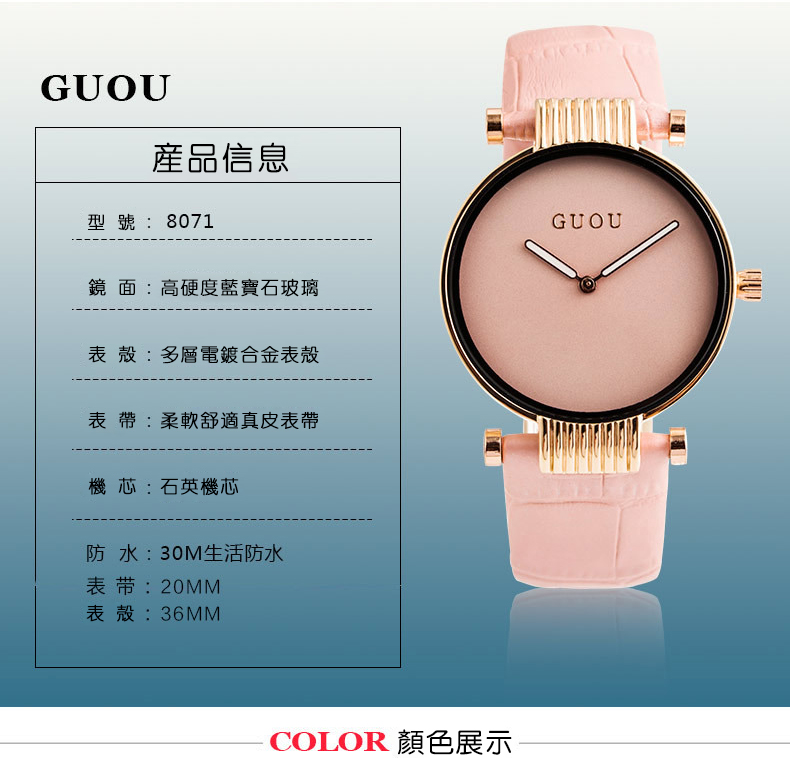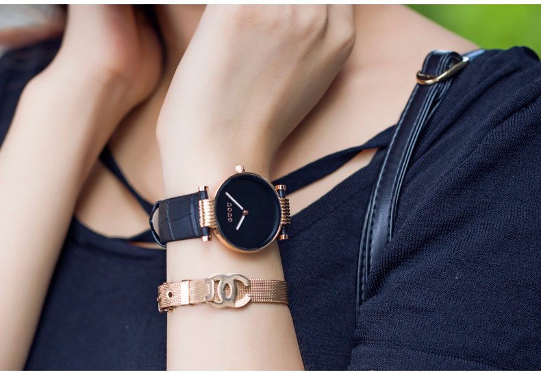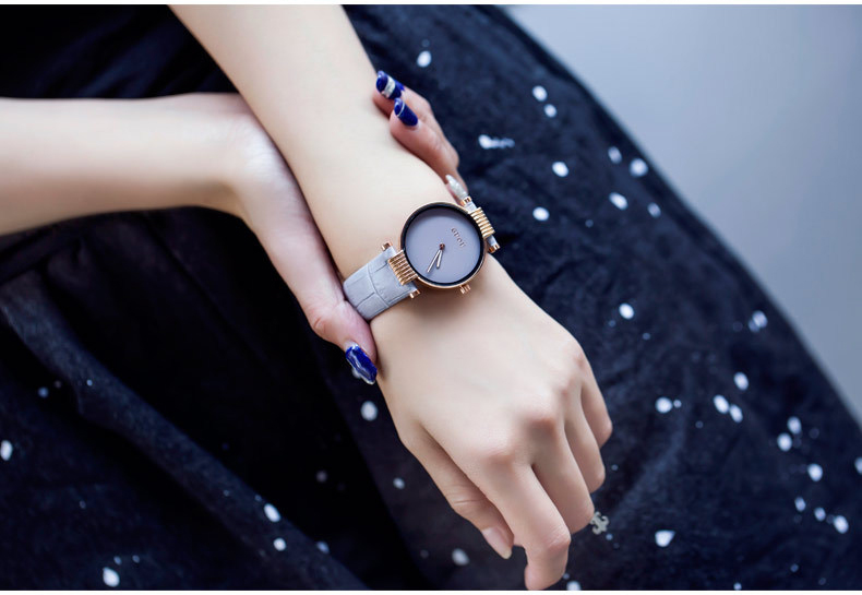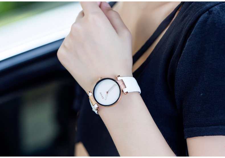 優雅時尚貝殼面真皮錶帶實心鋼錶Wat43