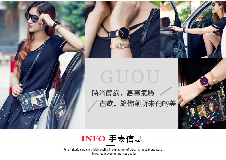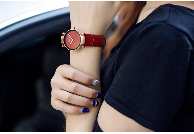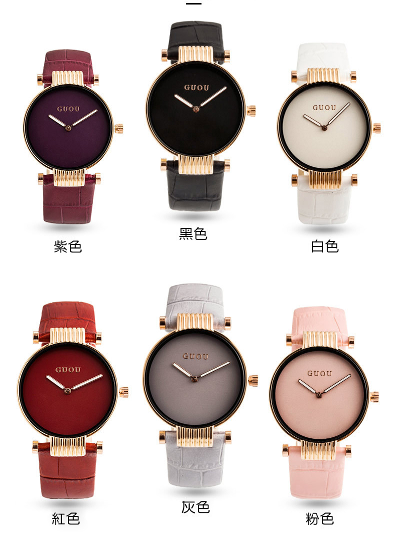 耐用大牌奢華時尚帥氣大錶盤水鑽表紅色紫色皮錶帶女士手錶Wat49
