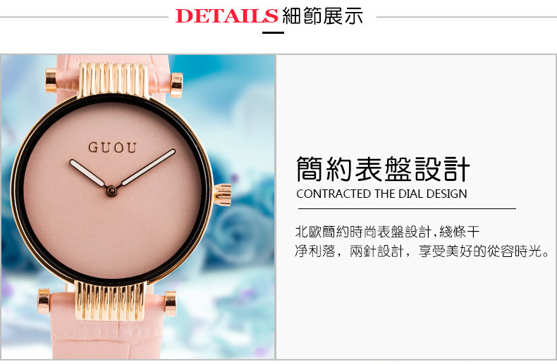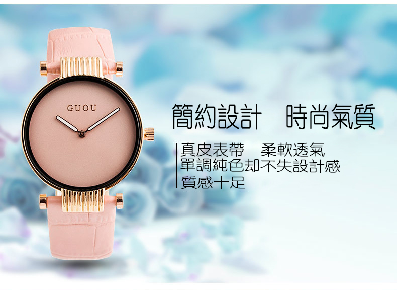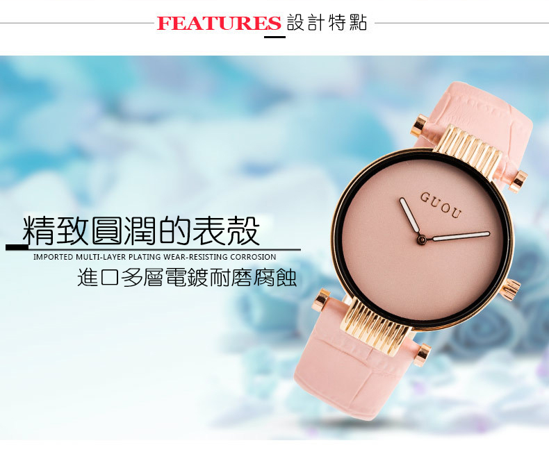新款 女士時來運轉腕表玫瑰金 雕花殼 皮錶帶 時尚女手錶Wat50