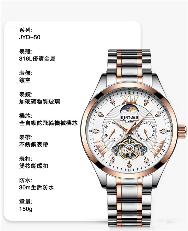鑲鑽男士陀飛輪機械腕錶 wat625