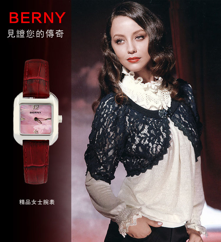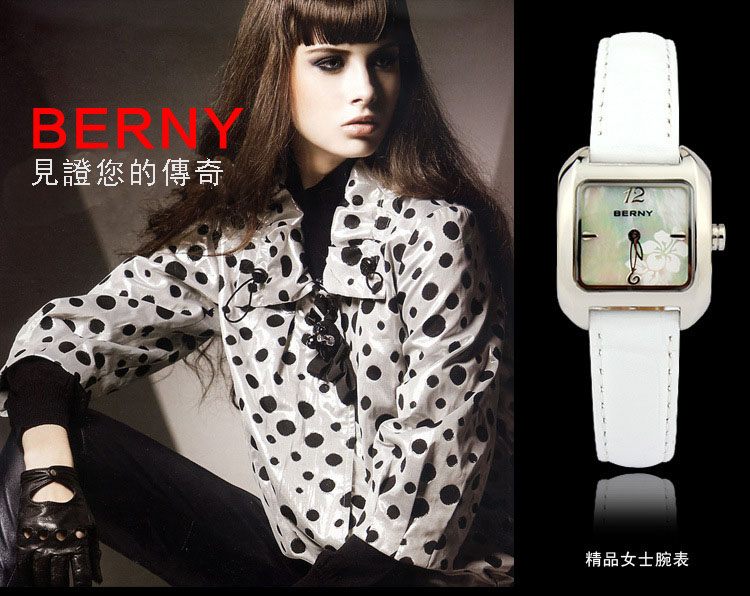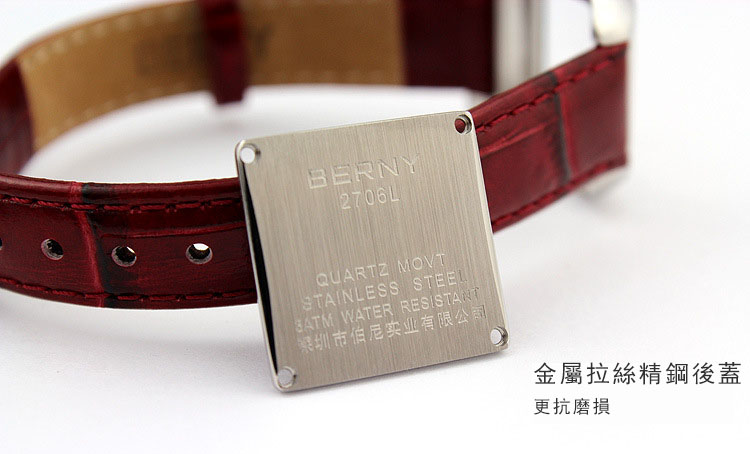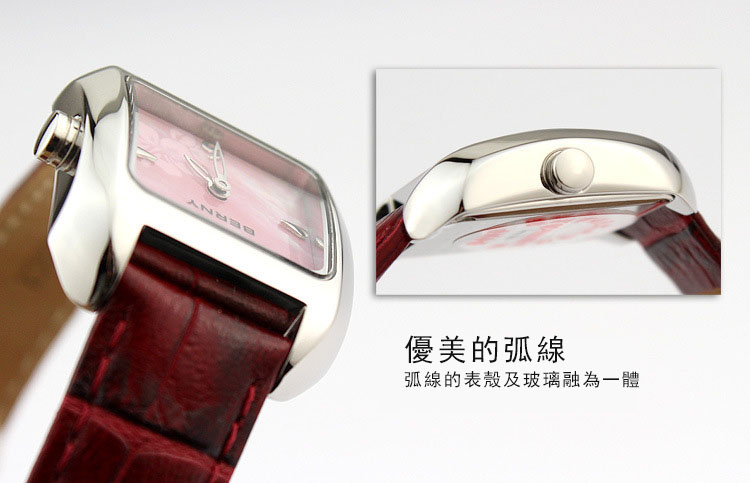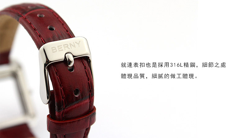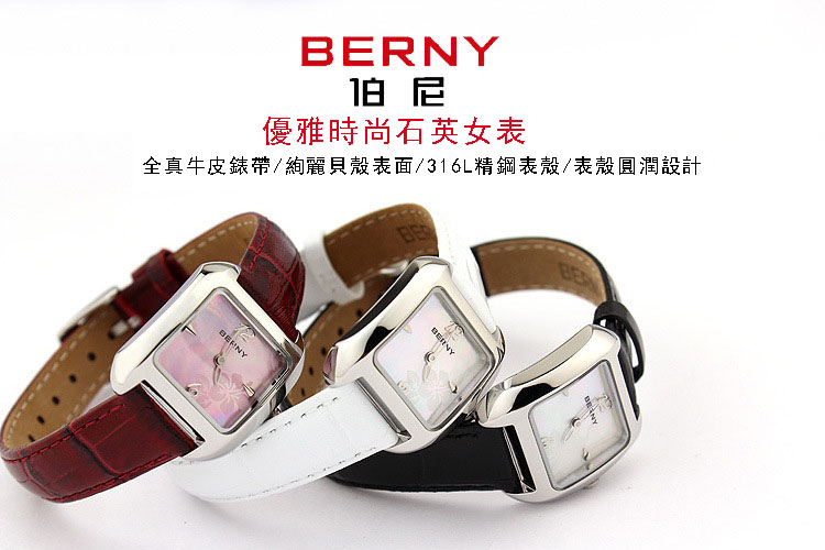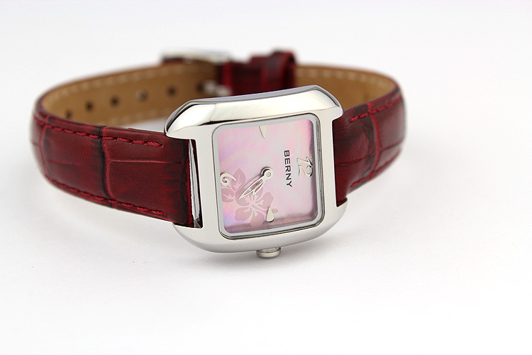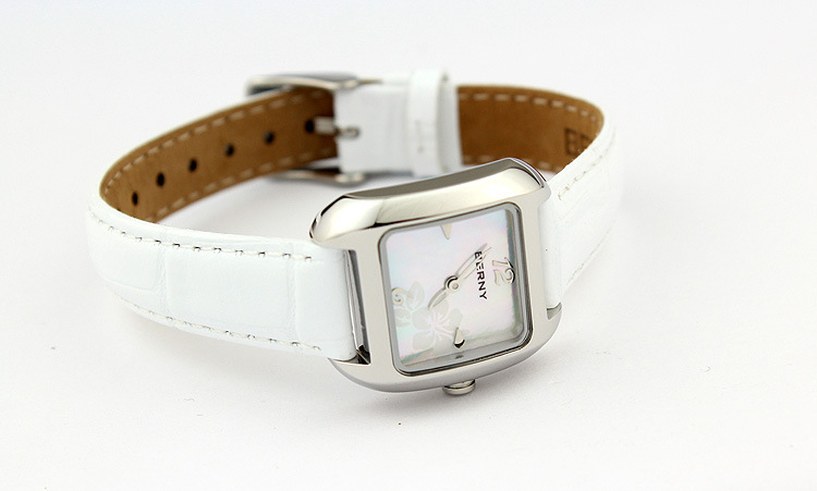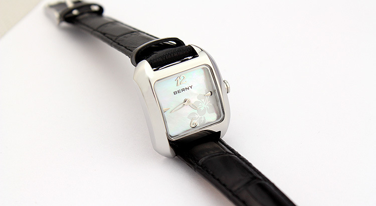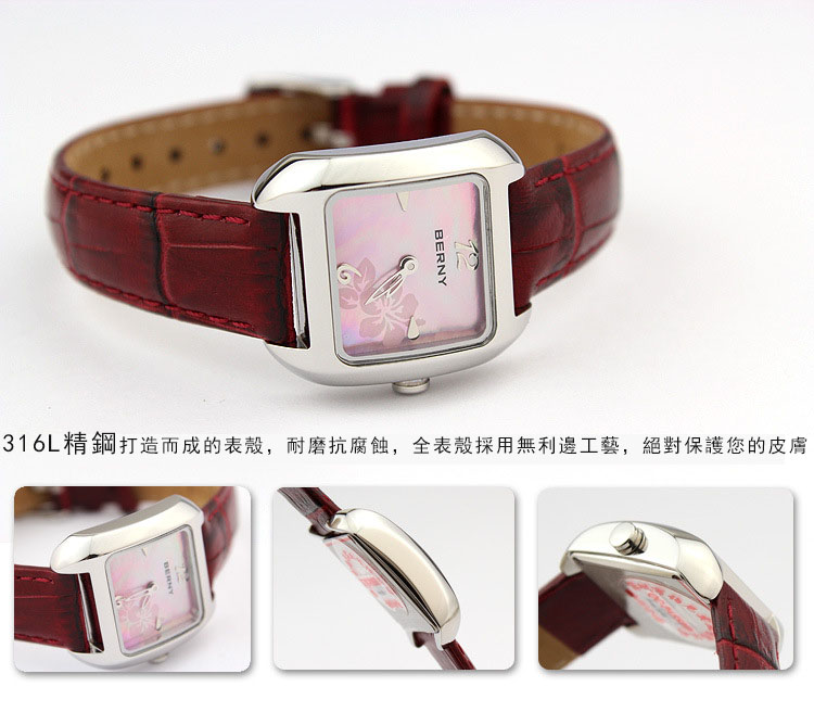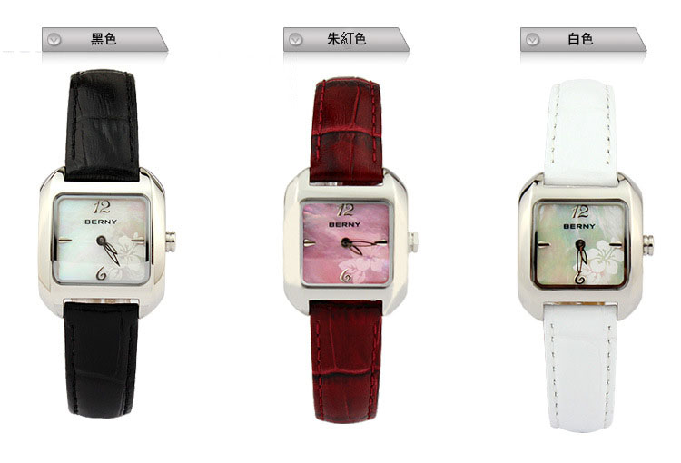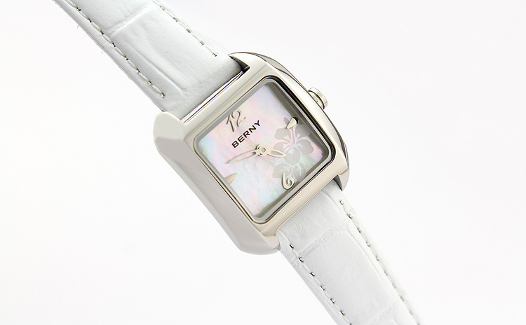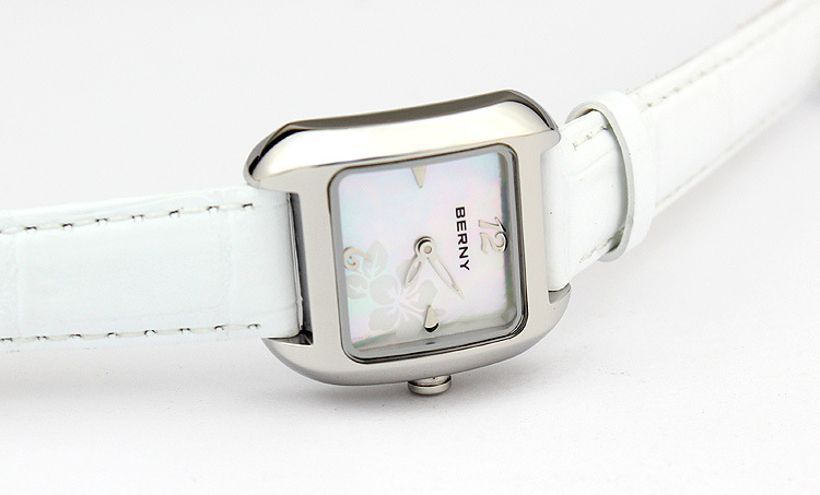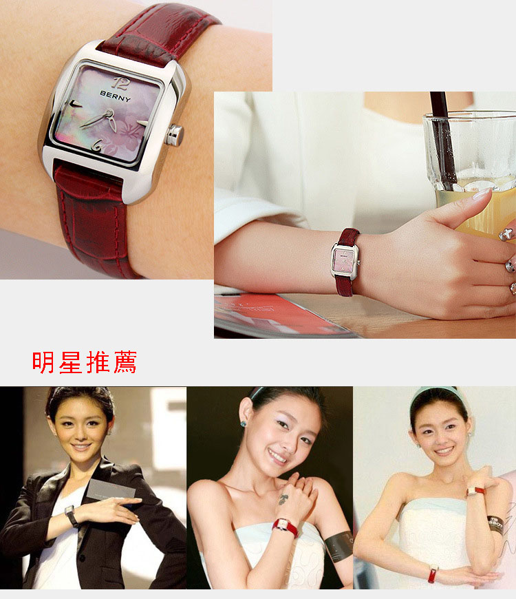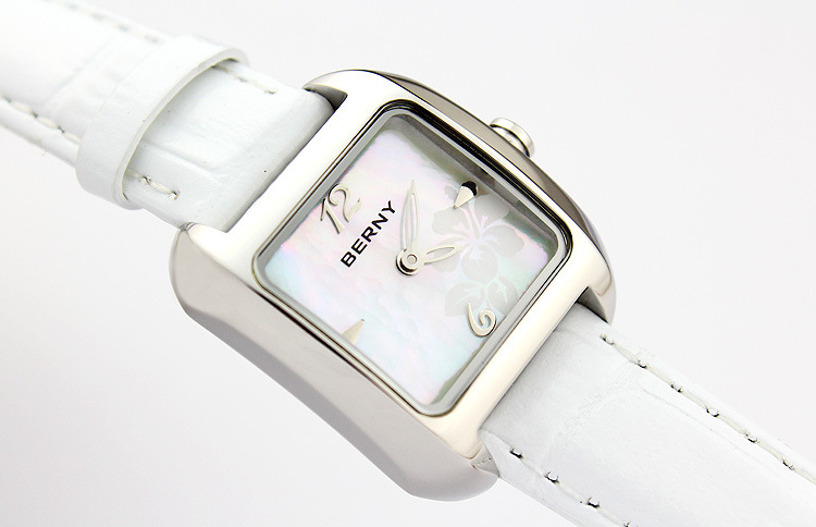 優雅時尚貝殼面真皮錶帶實心鋼錶Wat43