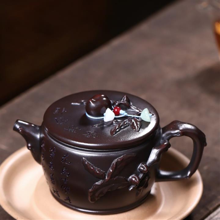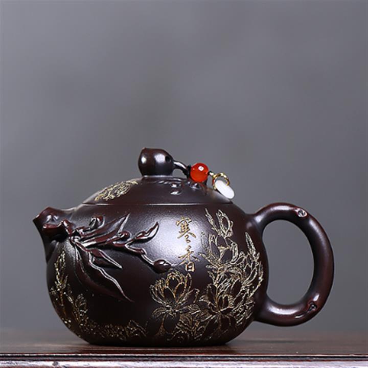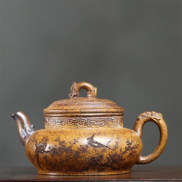 原礦古烏泥滿刻花鳥西施茶壺POT7817