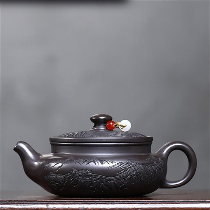 原礦翡翠綠泥刻繪漢韻茶壺POT7866