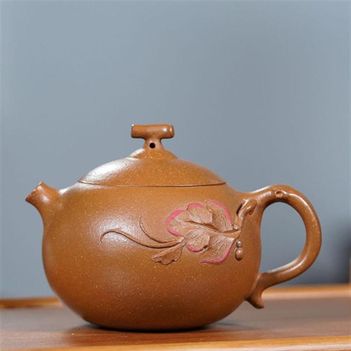 原礦玄鐵石黃琺瑯笑櫻泡茶壺POT7853