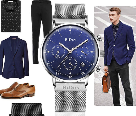 商務簡約石英表潮流六針防水錶米蘭尼斯鋼錶帶Wat45