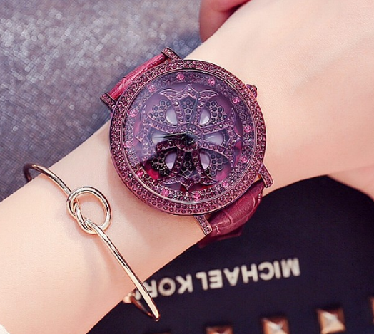 爆款 時來運轉 潮流個性 時尚 紫色皮錶帶 鑲鑽女士手錶Wat55